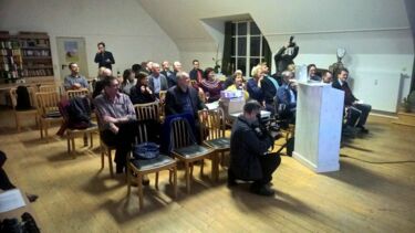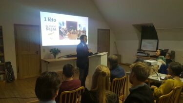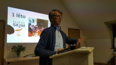 Měrćin Wałda eröffnete den Abend mit einem Vortrag über die Wichtigkeit eines sorbischen Parlaments und erinnerte an die Gründungsimpulse der Sejm-Initiative. Über die ersten Erfolge des Sejm berichtete Hajko Kozel. Beispielsweise benannte er die Aufnahme der Forderungen des Sejm in den Koalitionsvertrag der sächsischen Regierung zu mehr Selbstbestimmungsrechten und Mitsprache in Bezug auf Angelegenheiten, die das sorbische Volk betreffen. Dieses ausgesprochene Dialogangebot sieht der Serbski Sejm als Chance, seine Ziele zu Bildungs- und Kulturautonomie sowie einer sorbischen Verfasstheit zu verwirklichen, wie Měrćin Krawc im Vortrag über die Perspektiven des Sejm darstellte.