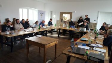 Pórucenje rozgrona za gósći na zachopku 14. schadowanja jo se žywje hužywało. Na pśepšosenje sejma jo pśišła pśedsedaŕka hokrejsnego sejma OSL, Martina Gregor-Ness. Wóna jo była wótworjona a zajmowana na dalšnem zgromadnem źěle, toś jo pórucyła kooperaciju mjazy Serbskim sejmom a tamnejšym fachowym huběrkom hokrejsne huwiśe. Tejerownosći jo pokazała na móžnosći zgromadnego źěła w hobcerkoma kultura a socialne. Partaja VOLT EU jo k wěsći dała, až jo tematiku Serbow pśiwzeła do swójogo partajowego programa a až co huwiśe Serbow pó droze k samopóstajowanju spěchowaś a pódpěrowaś. Zrownju jo Grundtvig-załožba z. t. swójich nowych cłonkow pśedsedaŕstwa pśedstajiła ako teke swój zaměr do pśichoda, až co se intensiwnje zaběraś ze serbskim pšašanim a z jogo pśesajźenim na politiskej rowninje.